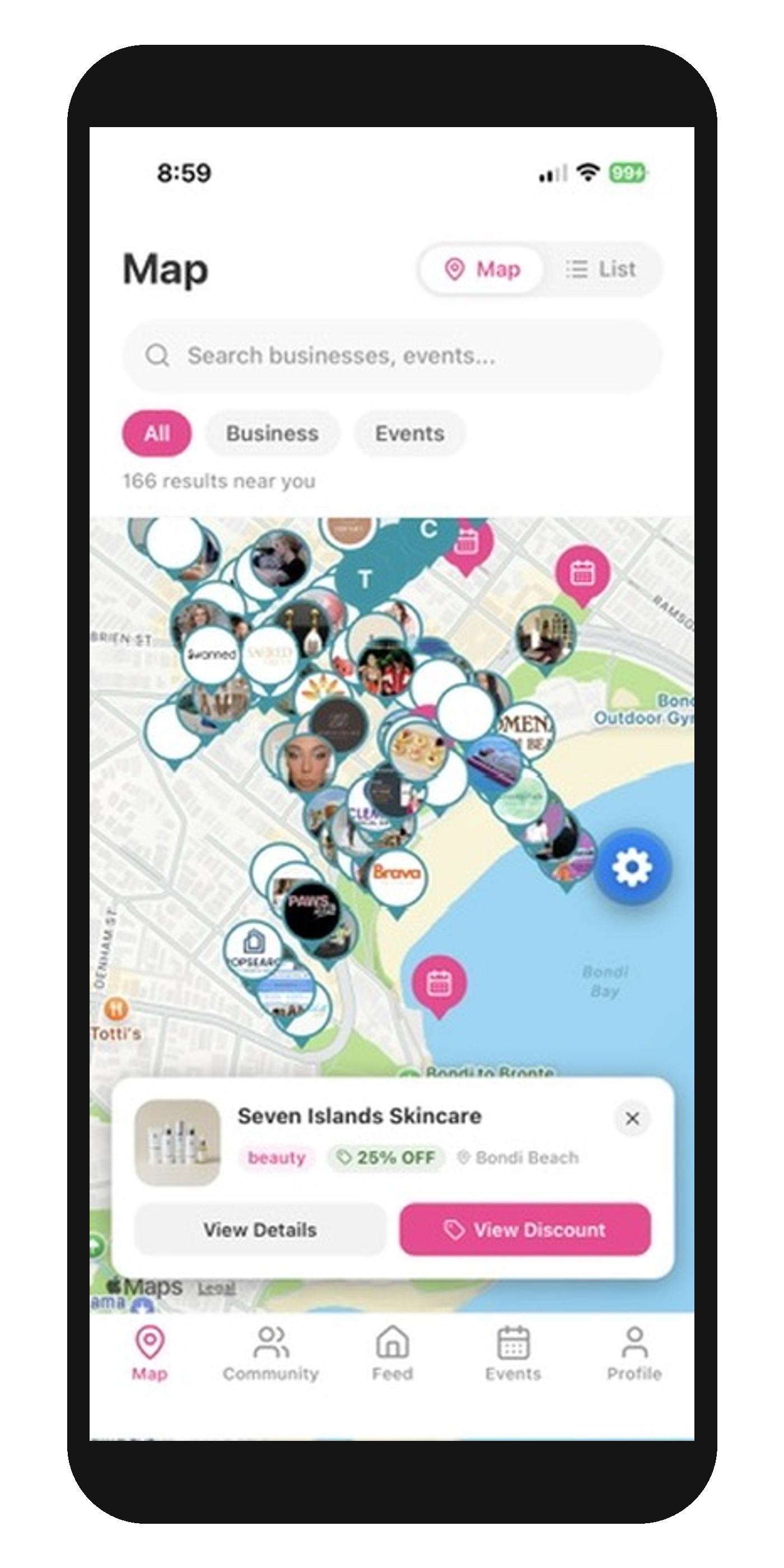 We built an app to flip the script — making social media social. From epic in-person events to insider local deals, live life like a true Bondi local surrounded by good vibes and great people.
